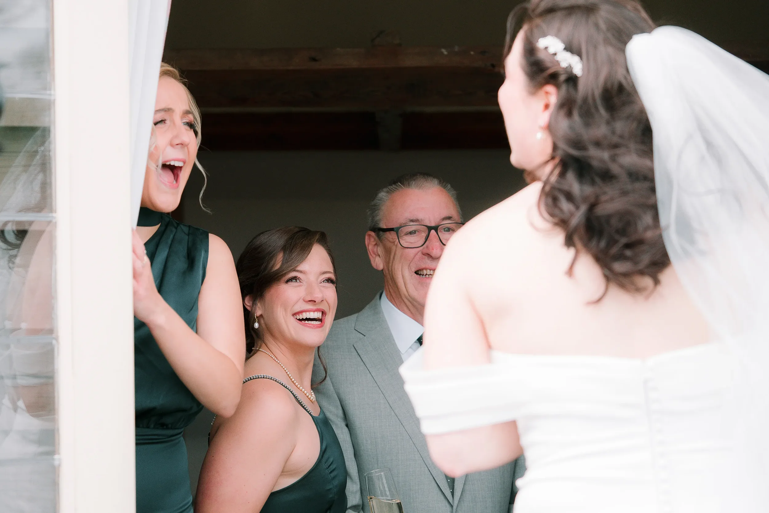The morning of a wedding has a unique rhythm. It starts slow:coffee cups, quiet chatter, the sound of rain or birds outside. And then, it gradually builds into a crescendo of excitement. My role during these hours is to document the atmosphere without interrupting it, capturing the candid details that define the day: the hands fastening a button, the nervous laughter with friends, and the way the light falls across the room as you step into your dress.